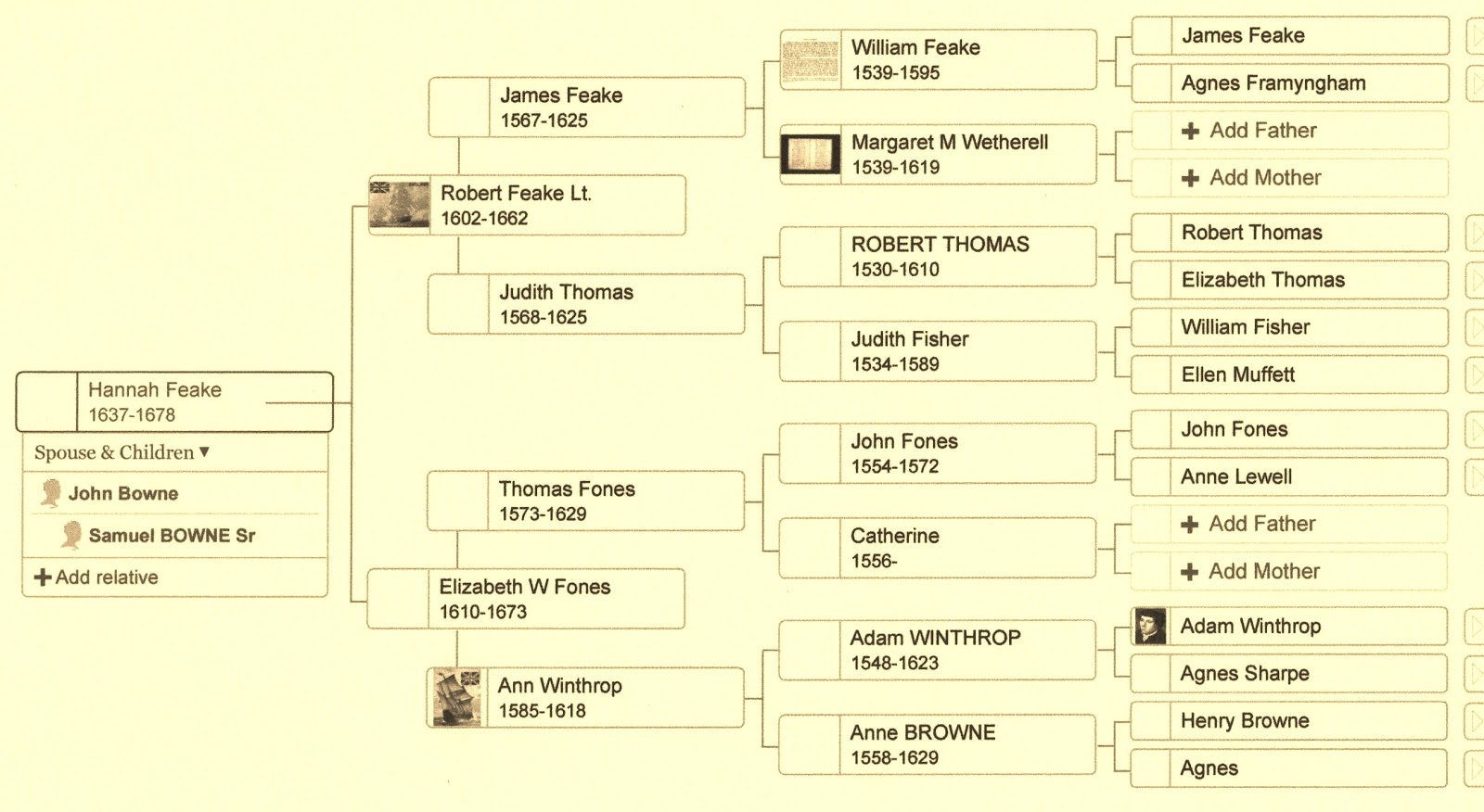One of the interesting discoveries I made while tracing ancestry was in finding that Hannah's sister, Elizabeth Feake, also ties into another family connection as the second wife of John Underhill (many years her senior) and their daughter Deborah who married into the Townsend line of the family.